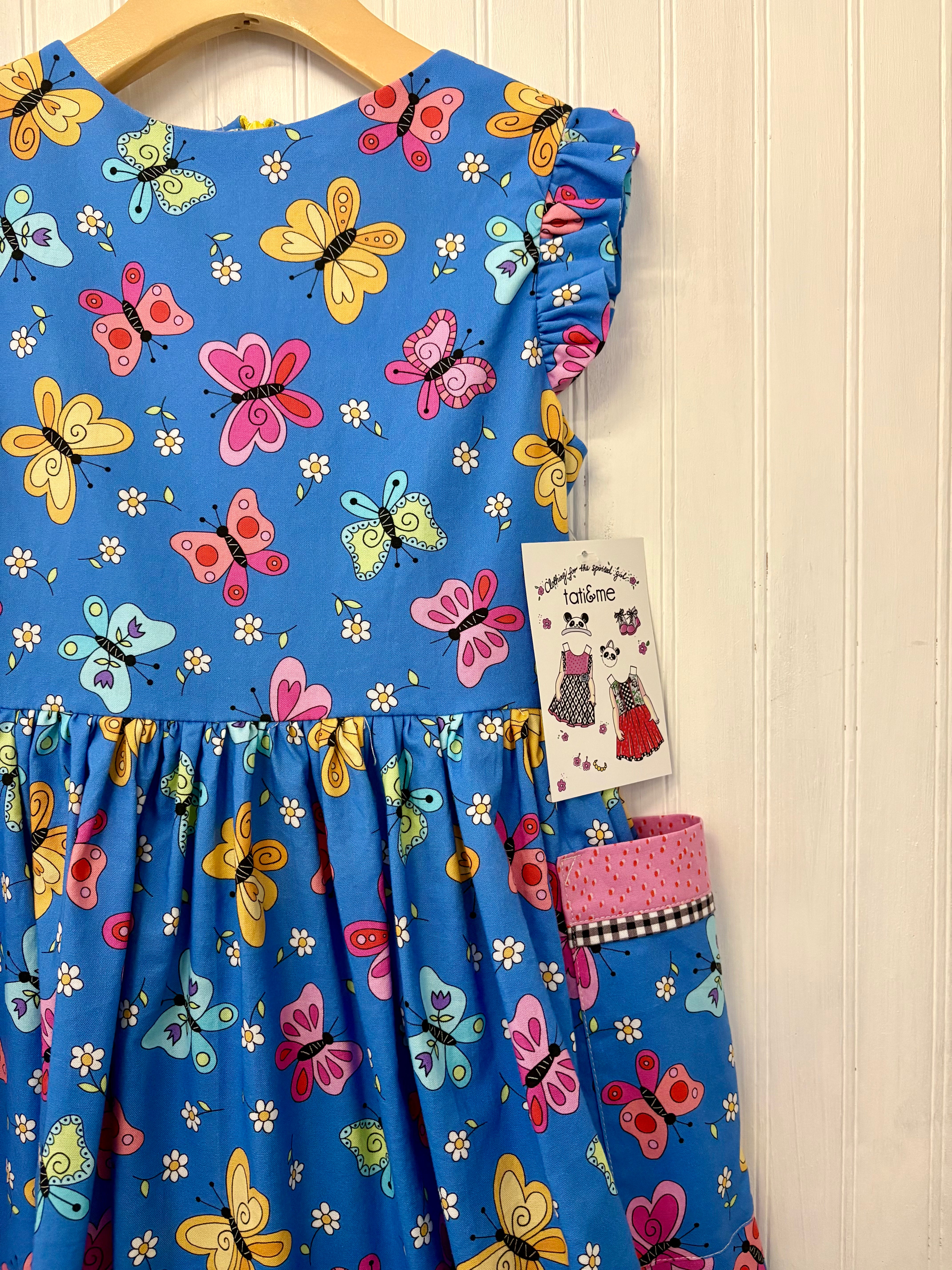 Butterfly Medley Pocket Dress- 7 year old